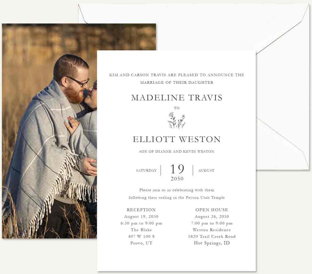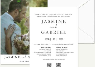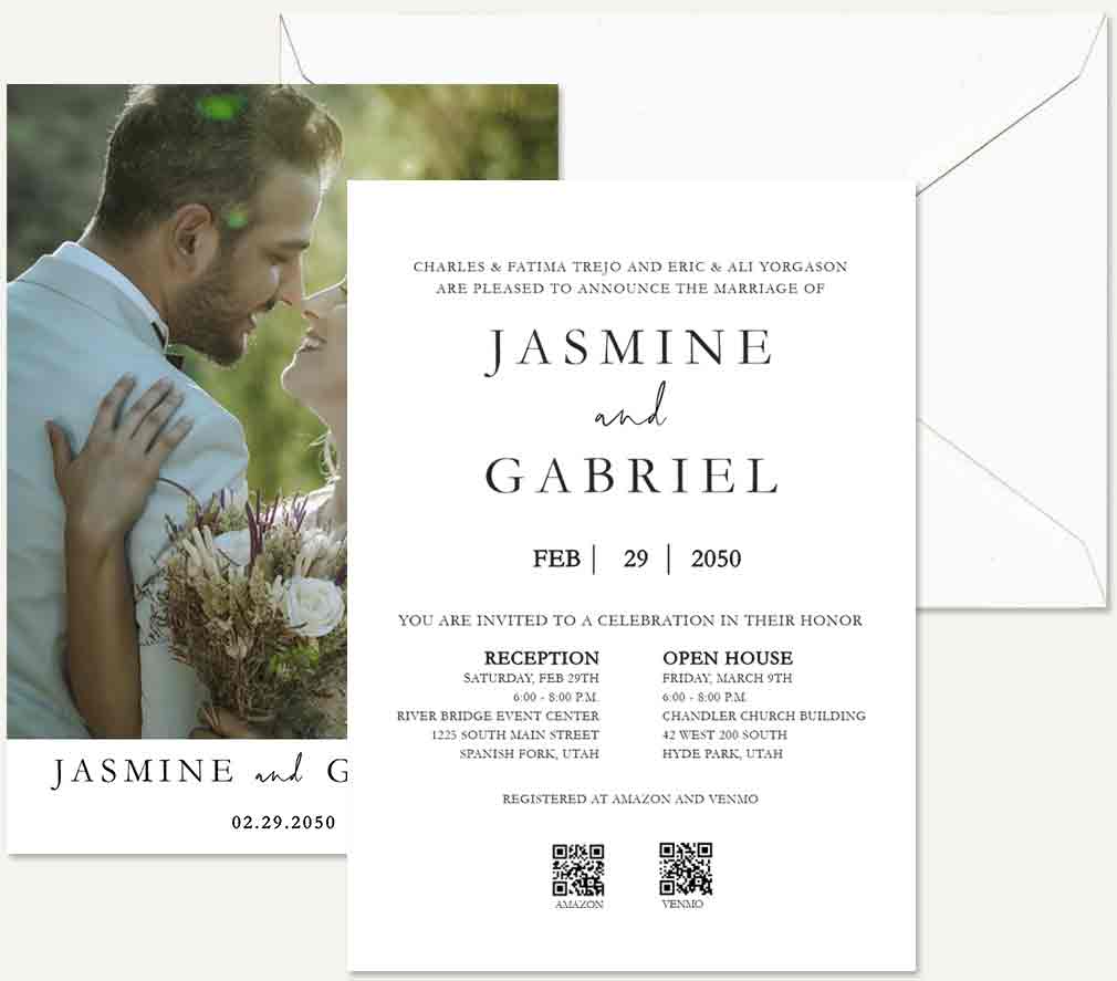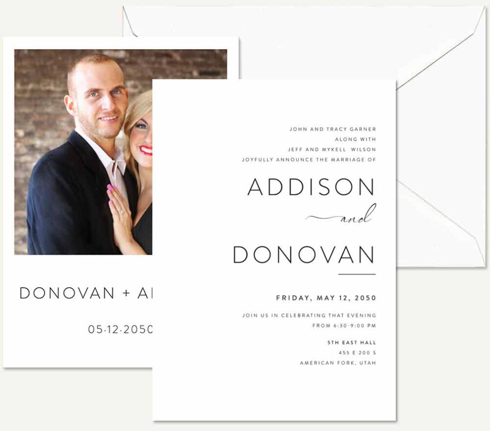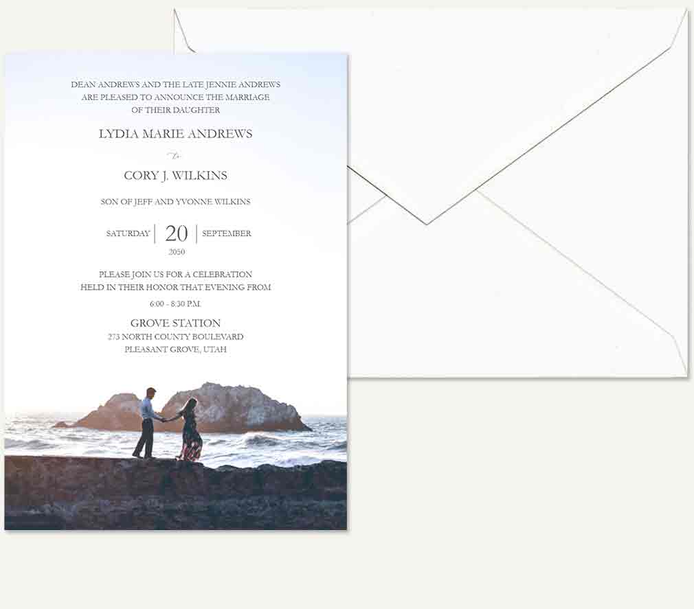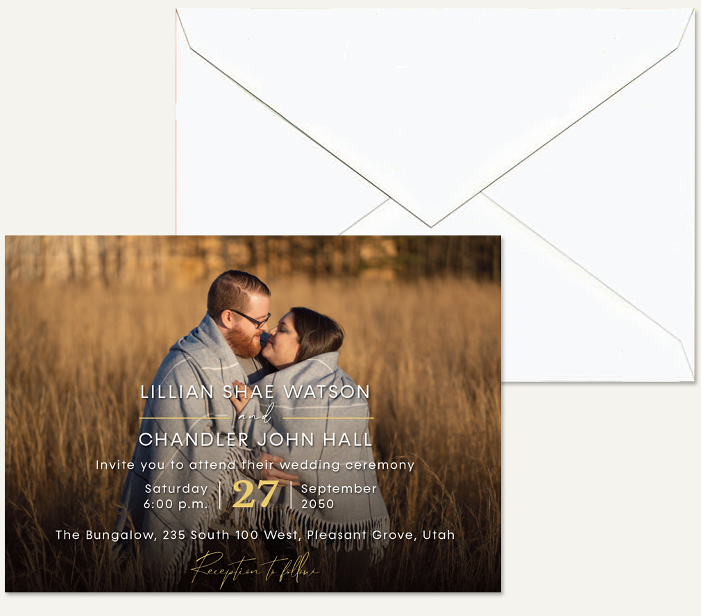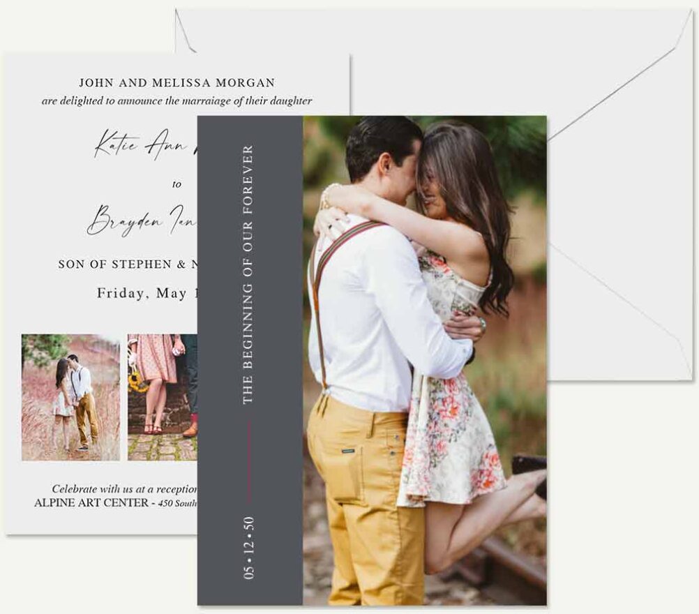 You can also customize your invitation with a picture or collage on the back. Additionally, we offer separate 5×7 or 4×6 photo prints.
